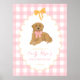 Celebre o seu marco com este doce e charmoso sinal de boas-vindas de um Ouro de ano. Com um filhote de recuperador de ouros de aquarelas e um fundo de gingham rosa, é a peça de declaração perfeita para um ouro que recupera o tema no primeiro aniversário. Ideal para décor de aniversário de meninas, festas inspiradas em animais de estimação, e fundos para cabines de fotos. Deve ter para temas de aniversário de filhotes com um toque flexível e feminino.