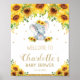 Poster Aniversário do Chá de fraldas de Elefante Sunflowe