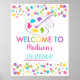 Bem-vindos aos convidados do seu partido com um sinal personalizado adorável. Enquadre o sinal e exiba-o numa mesa perto da entrada ou monte a espuma poster e mostre-a fora em um calcanhar. O design apresenta pinturas coloridas do arco-íris.