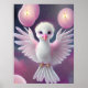 Poster Aniversário do Pássaro Bebê Branco e Rosa