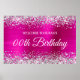 Poster Aniversário do Silver Glitter Hot Pink Foil