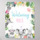 Este sinal bonito será um excelente adicional para a decoração do seu partido. Enquadre o sinal e mostre-o na mesa das bebidas. A design apresenta animais de safari aquarela com folhas falsas de folha de ouro e confete.