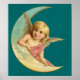 Um doce desenho de vintage. Um anjo tranquilo, parecido com uma criança, descansando na curva de uma lua crescente.