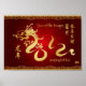 Ano Novo Lunar Chinês. Ano do Poster do Dragão 2012. Vermelho e Dourado com o fundo de Yin Yang abstrato.