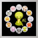 Design para o Ano Chinês do Cobra apresentando em círculo cada um dos 12 animais do zodiac, com a cobra no meio para representar o Ano do Cobra. O símbolo chinês ou kanji japonês para cobra também está escrito no meio. As cores de fundo podem ser facilmente alteradas ou você pode nos contatar através da nossa loja para obter assistência. sgb01