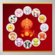 Design para o Ano Chinês do Dragão, com cada um dos 12 animais zodíacos em círculo, com o dragão no meio para representar o Ano do Dragão. O kanji japonês do dragão, ryuu, também está escrito no meio. As cores de fundo podem ser facilmente alteradas ou você pode nos contatar através da nossa loja para obter assistência. sgb01