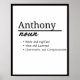 Poster Anthony, Definição de Nome Personalizado Masculino