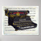 A pintura de uma velha máquina de escrever sobrepôs-se ao texto lendo "A raposa marrom rápida salta sobre o cão preguiçoso." Um poster para qualquer escritor, editor ou amante de itens antigos.