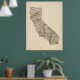 Póster Antigo Mapa de Música da Califórnia