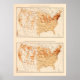 Poster Antigo Mapa Populacional Irlandês dos EUA (1900)