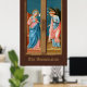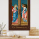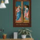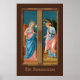 ℣. O Anjo do Senhor declarou a Mary, ℟. E ela concebeu o Espírito Santo." Assim, começa a oração tridiária de Angelus à BVM (Baverna Virgem Maria), que comemora a encarnação na Anunciação. + A Anunciação foi um assunto imensamente popular na arte da Idade Média e do Renascimento. Como composição de duas pessoas, o sujeito emprestou-se a usar nas folhas externas de triptychs: o anjo em uma folha; Mary, na outra. Um triptych é um trabalho de arte—na maioria das vezes uma pintura de painel—que é composto por três partes articuladas de forma que possa ser exibido aberta ou fechada. Aqui, Filippo Lippi (1406-1469) pintou a Anunciação em tempera sobre madeira em pinks quentes, salmões e vermelhos e em blues brilhantes e escuros. Ambas as figuras estão em seus estreitos espaços respectivos, o Arcanjo Gabriel curvando levemente para a gentil e doce donzela Maria. + Santos_Aplvery gosta de um fundo castanho escuro para esta imagem. Um fundo castanho escuro dá aos espectadores a impressão de que eles estão olhando a cena através de uma janela. Mas, como de costume, fornecemos um cartão postal da Paleta de Cores para outras matizes sugeridas. banquete da Anunciação: 25 de março; Banquete de Ruas. Gabriel o Arcanjo: 29 de setembro + Crédito de Imagem (M 038): Imagem antiga da Anunciação de Filippo Lippi (1406-1469) de um cartão postal do final do século XIX na cromolithografia, originalmente publicado por E. Sborgi, Florença, Itália, da coleção privada de efemérsia religiosa do designer. Os painéis originais de um poliptych de origem desconhecida estão na Sala Filippo e Filippino da Galeria Uffizi em Florença. A Anunciação forma as metades superiores das duas folhas enquanto SS. Anthony Abbott e João Batista aparecem no canto inferior esquerdo e no canto inferior direito, respectivamente.