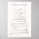 Uma pilha romântica de livros em branco e ouro, com uma delicada dica de rosa-pincel, e no topo está um monte de flores brancas. "Apenas mais um capítulo" é escrito à mão num texto cursivo. Um belo pedaço de arte de parede, e um presente de excelente para um amante de livros.