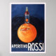 Poster mostrando uma garrafa do Aperitivo de Martini & Rossi assentando sobre uma laranja com um rosto lambendo seus lábios.