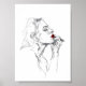 Um retrato abstrato impressionante de uma mulher aplicando batom vermelho vibrante. O esboço é principalmente preto e branco, com apenas os lábios e batom em negrito vermelho, enfatizando elegância, confiança e expressão artística. Perfeito para entusiastas da arte, amantes da moda, ou aqueles atraídos para retratos modernos minimalistas.