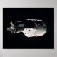 A espaçonave Americana Apollo, vista em órbita terrestre pela nave soviética Soyuz 19 durante a missão conjunta do Projeto de Teste Apollo Soyuz (ASTP) EUA-URSS. O Módulo de Comando e Serviço (CSM) e o Módulo de Acoplamento (DM) são contrastados contra um fundo no céu negro. As naves americanas e soviéticas foram unidas no espaço por cerca de 47 horas em 17 de julho de 1975, 18, 19. Esta fotografia foi fornecida pela URSS numa troca de fotografias tiradas durante o voo da ASTP. A equipe da Apollo era composta por astronautas Thomas P. Stafford, comandante; Donald K. "Deke" Slayton, piloto de módulo de acoplamento; e Vance D. Marca, piloto de módulo de comando. A tripulação Soyuz 19 era composta por cosmonautas Aleksei A. Leonov, piloto de comando; e Valeri N. Kubasov, engenheiro de voo.