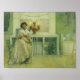 Imagem vítrea em cores mudas de uma jovem sentada ao lado de velas. "After the Baile de formatura (the party or dance)", por Carl Larsson, artista/ilustrador sueco.