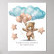 Um adorável urso pardo cor-de-rosa com balões e estrelas com nuvens azuis acima dela. Adicione o nome das suas filhas e aniversário. Um poster perfeito para o berçário.