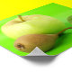 Maçã e pera com fundo verde fluorescente.
