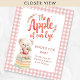Apple dos nossos Livros de Gingham Rosa-Olho para Bebê Obrigado Sinal de Chá de fraldas. Disponível digitalmente e impresso. Uma tipografia artística para a Apple of our Eye, um ursinho de pelúcia bonito segurando uma maçã, sentada em livros e um fundo de gingham rosa para esta design. Personalize facilmente o resto das palavras conforme necessário.