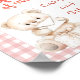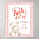 Cartões de Chá de fraldas e Sinal de Presentes de Apolho de Olho Gingham. Disponível digitalmente e impresso. Uma tipografia artística para a Apple of our Eye, um ursinho de pelúcia bonitinho segurando um cartão e sentando sobre um dom e um fundo de gingham rosa para esta design. Personalize facilmente o resto das palavras conforme necessário.
