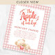 Apple of Eye Gingham Meia-Noite de Tarde Noite Sinal de Chá de fraldas Noturna. Disponível digitalmente e impresso. Uma tipografia artística para a Apple of our Eye, um ursinho de pelúcia adormecido agudo segurando uma maçã e um fundo cor-de-rosa de gingham para esta design. Personalize facilmente o resto das palavras conforme necessário.