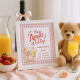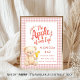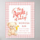 Apple of Eye Gingham Momosa Bar Sinal de Chá de fraldas. Disponível digitalmente e impresso. Uma tipografia artística para a Apple of our Eye, um ursinho de pelúcia bonito segurando um rabo de cavalo e um fundo de gingham rosa para esta design. Personalize facilmente o resto das palavras conforme necessário.
