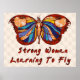 Celebre o crescimento do seu poder emergente com esta borboleta multicolorida com o corpo de uma mulher no centro e as palavras "Mulher forte aprendendo a voar."