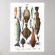 Ilustração vítrea de uma variedade de peixes: Molo Vermelho, Cinza, John Dory, Sarda, Bacalhau, Badejo, Salmão, Arenque, Solha, Solha, Espuma, Gurnet, Crayfish. Guia de excelente para o pescador ou chef!