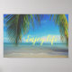 Praia tropical com ramal de palmeiras e mar Caribe.