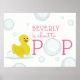Um poster chá de fraldas com ilustração de um pato de borracha e bolhas incorporadas ao texto "Sobre POP". Personalize o nome. Os convites para chuveiros de bebês e os itens de coordenação estão disponíveis na Paperie de Jill.