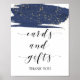 Este pôster de cartões e presentes em aguarela azul-marinho e dourado é perfeito para um casamento elegante ou chá de noiva. Este design abstrato de noite estrelada apresenta uma pincelada dramática de aguarela azul-marinho sobreposta com belo brilho dourado falso. A linha de texto na parte inferior do cartaz pode ser personalizada com a data, os nomes da noiva e do noivo, ou uma mensagem curta como "Obrigado".