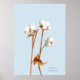 Um impressão botânico com plantas de algodão pintadas com aquarela em fundo azul macio com o nome científico. Na Floriografia, Língua das Flores, a planta de algodão representa a cura feminina. Você pode editar ou remover o texto e alterar a cor do plano de fundo para o ajustado de suas necessidades. Esta poster ficava bonita num conjunto com os meus outros impressões botânicos.