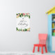 Bem-vindos aos seus hóspedes com este símbolo de boas-vindas, personalizável, com uma vibrante terra tropical aquática de folhas de palma, bananeiras, hibisco, plumeria e muito mais. Este design de inspiração tropical dá o tom para a sua celebração batizante. Personalize o sinal de batização tropical com o nome do bebê, data do evento ou mensagem especial. É perfeito para entradas de cerimônias, recepções ou fundos de fotos.
