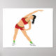 Esta design é de uma ginasta feminina fazendo seus warmups. O ginasta está vestindo um topo vermelho e um shorts e está fazendo alguns trechos. Este ginasta aquecendo a design parece excelente. Perfeito para si mesmo ou como presente