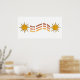 Um design retrovisor com sóis que diz que aqui vem o sol. Esta design parece realmente eficaz nesta Poster