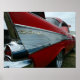 Uma foto baixa e próxima do lado de um clássico ar de Chevy Bel Air vermelho e branco da retaguarda, capturando aquela barbatana incrível!