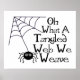 Quem alguma vez mentiu ou mentiu, sabe muito bem como se enredar numa teia de mentiras. Apresentando uma aranha balançando de uma reluzente como a teia.