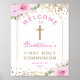 Arch Rosa Dourado Floral Primeira Comunhão Sagrada Poster de Boas-vindas