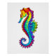 Articulação artificial, brilhante, arco-íris, cavalo de mar poligonal sobre fundo branco. Tatuagem brilhante.