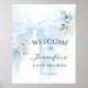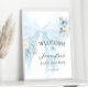 Abençoe seus convidados com charme e estilo usando nosso elegante sinal de boas-vindas de "Baby in Bloom" Coquette, o chá do bebê! Este adorável design apresenta um arco azul claro de aquarela decorado com flores azuis de pénia e folhas verdes de sábio. Este doce e eterno sinal de boas-vindas define o tom para uma primavera inesquecível ou festejação estilo boho de verão.