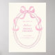Comemore em estilo com este sinal de boas-vindas de chá de panela inspirado em vintage baixável, com um quadro oval desenhado com uma mão rosa suave e desenhado com um arco.
