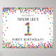 Primeiro sinal de boas-vindas festa de aniversário do arco-íris! Apresentando o nome do seu filho ou garota com um 1 em confetti, com círculos de confete coloridos e divertidos borrifados no topo deste sinal de boas-vindas da festa de aniversário.
