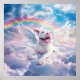 Um pitbull branco radiante e sorridente com asas angelicais está graciosamente empoleirado em uma nuvem fofa e cintilante em um céu sereno e celestial. Os olhos do cão brilham de alegria e paz, como se incorporassem uma sensação de felicidade e contentamento eternos. As asas são macias e delicadas, brilhando com uma luminescência suave que acrescenta à atmosfera etérea. Ao redor do cão, o céu é uma paleta sonhadora de azuis suaves e tons dourados, sugerindo a calidez e tranquilidade do céu dos animais de estimação. Esta imagem simboliza a Ponte do Arco-íris, onde os animais de estimação queridos encontram descanso e felicidade eternos, observando para sempre seus companheiros terrenos com amor e devoção.
