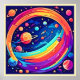 Uma ilustração mesmerizante de um vibrante vórtice arco-íris girando através de uma paisagem cósmica, cheia de planetas e estrelas coloridas (Esta Design Feita com IA). Faça a ordem hoje e encare a alegria de Comprar!