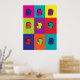 Fotos do gato neko maneki, também conhecido como gato Fortune, feitas num arco-íris de cores em estilo pop num poster!
