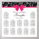 Este gráfico formal de assentos de recepção de casamento apresenta um elegante padrão de rosa preto e branco, um arco rosa quente.