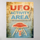 Área de Atividade OVNI. Poster vintage engraçado de tipografia com aliens engraçados de citação de OVNI atacam a área 51, poster engraçado estilo retrô, arte geek.