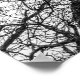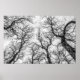 Árvores nuas e tortas em preto e branco se juntam no topo