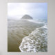 Pintura do Morro Rock na Morro Bay California atrás de areia e ondas onduladas.