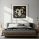 This artwork embodies the essence of Aries—passionate, fearless, and full of energy—while maintaining a timeless and sophisticated aesthetic. The contrast of dark cosmic tones with luminous details creates a striking visual presence in any space.